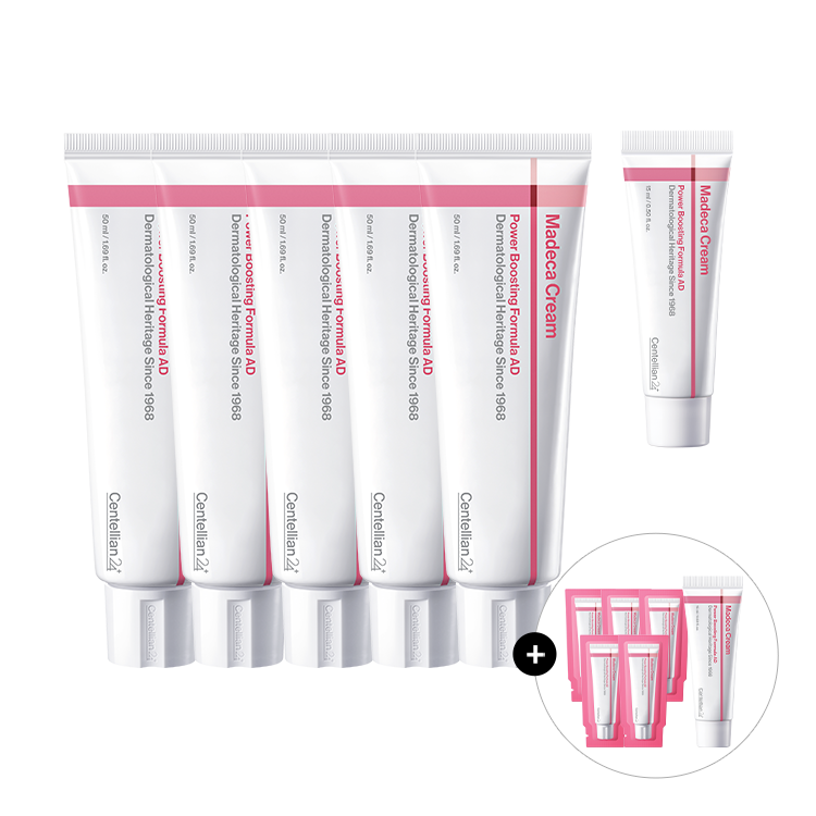 Madeca Cream Power Boosting Formula Advanced Set includes 5 full-size and 1 mini tube. Hydrates, soothes, and fights aging.