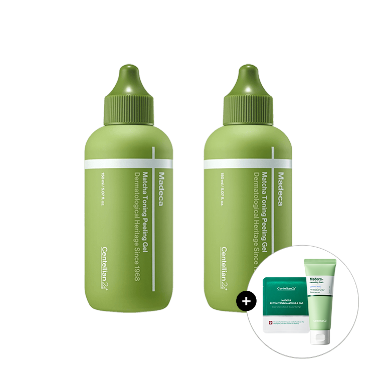 Madeca Matcha Toning Peeling Gel 150mlx2 gently exfoliates dead skin cells for a brighter complexion. Set of two.