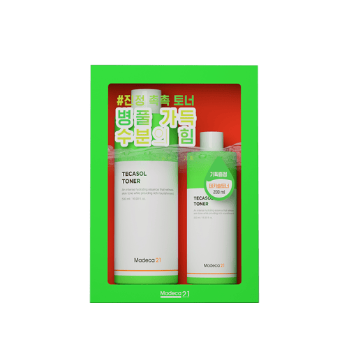Tecasol Toner Planning Set includes a 500ml jumbo bottle and a 200ml bottle. Ideal for daily soothing care for troubled skin.