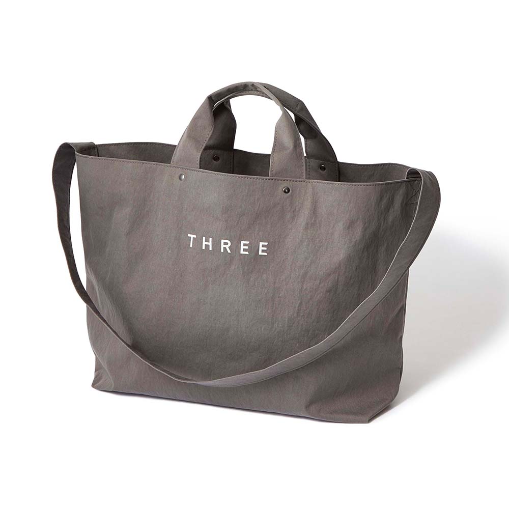 THREE Tote KO L is the largest size, designed for overnight trips or heavy loads. Features reinforced straps and a spacious interior.